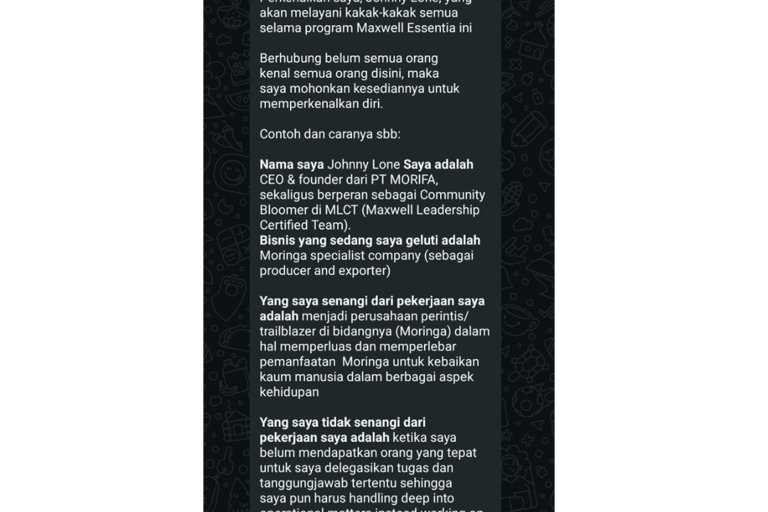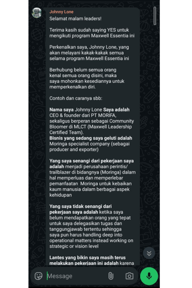 Grup WhatsApp Komunitas Essentia untuk refleksi & diskusi mingguan